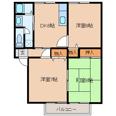 | 間取り | 3DK(DK6 洋6 洋7 和6) | 主要採光面 | 南 |